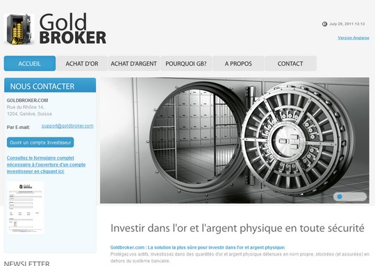 Vous êtes dirigé vers Goldbroker. Achat d'or et d'argent en ligne et stockage de votre or/argent dans un de leurs coffres en Suisse.